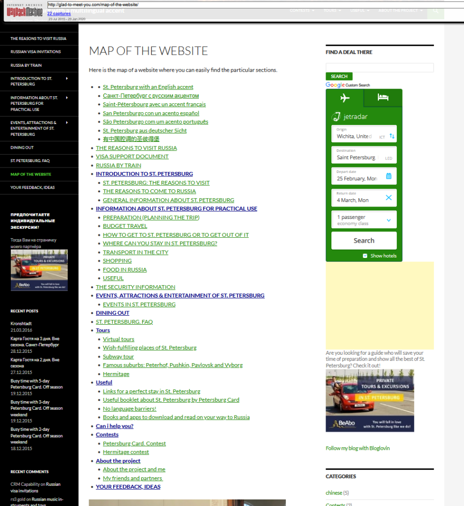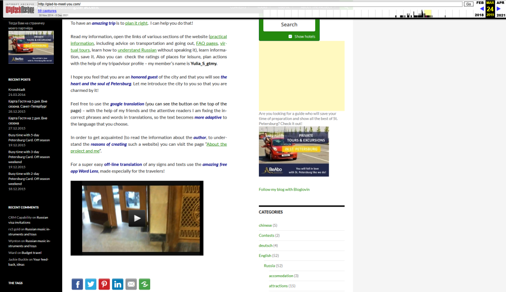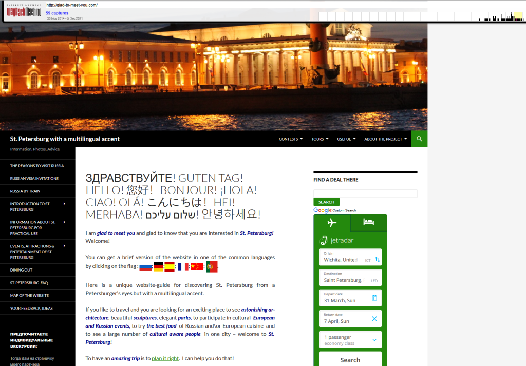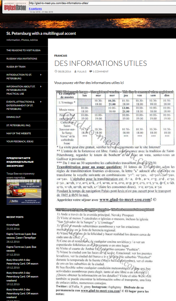 2014 — Travel Website: In addition to leaving reviews on TripAdvisor, i started creating a detailed website about St.Petersburg and also began posting on my Instagram account. I gave advice and shared a lot of well-researched information like entering museums for free, etc.