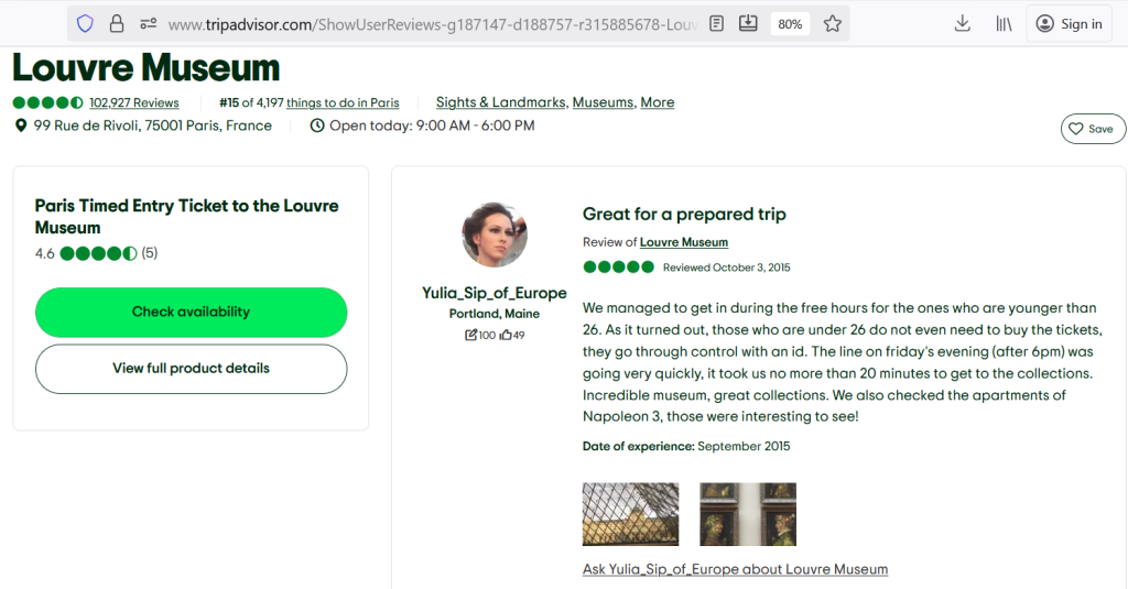 And below you can see some of my TripAdvisor reviews.