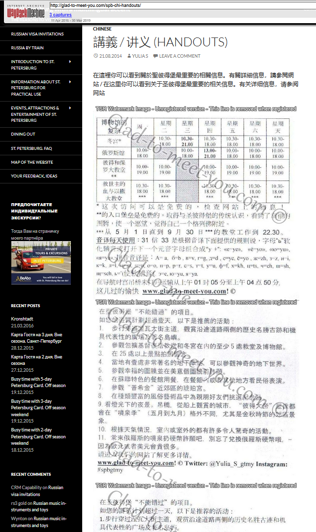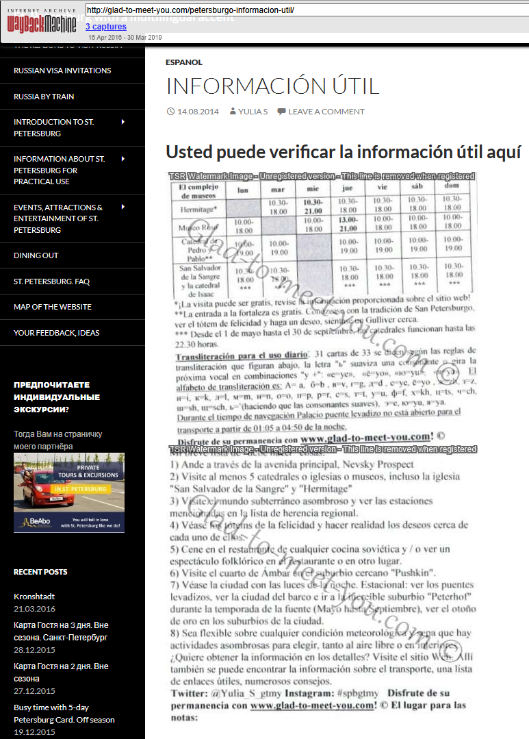 2014 — Travel Website: In addition to leaving reviews on TripAdvisor, i started creating a detailed website about St.Petersburg and also began posting on my Instagram account. I gave advice and shared a lot of well-researched information like entering museums for free, etc.